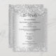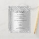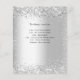 A modern, elegant wedding details/program/timeline. Faux silver looking background decorated with faux silver glitter, sparkles. Personalise and add your names and wedding details. Black coloured letters.