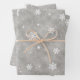 Silver Glitter White Stars and Snowflakes Pattern Wrapping Paper Sheet