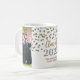 Customisable photo template class of 2025 graduation mug with gold and silver confetti pattern.