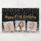 Elegant custom birthday design featuring gold and silver confetti over a black background, modern script typography with the words "Happy 100th Birthday" (in gold), your name and birth date (in silver) and three of your favourite photos framed in metallic gold foil.