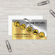 A faux silver and gold layer features five handyman-construction icons. They can represent some of the work you may offer e.g. the drill-measuring tape can represent remodeling or home repairs, the brush for painting, washing machine for electrical repairs, the faucet for plumbing services, the spades-fork for landscaping etc. At the top is the business name "HOME REPAIRS" and a slogan caption which you can change. Towards the base in the gold layer lies your prestigious name and contact details.