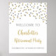 Custom text retirement party poster with silver and gold confetti.
