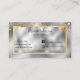 An elegant and modern business card. Faux silver looking background with a slim faux gold frame. Decorated with golden dripping stars. Personalise and add your name and text/title on front. Black letters. The name is written with a modern and trendy hand lettered style script.