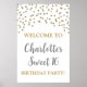 Custom text sweet 16 birthday party poster with silver and gold confetti.