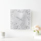 Silver Gray Floral Palm Monochrom Metallic Steel Square Wall Clock