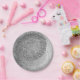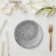Silver Gray Glam Abstract Graphite Spiral Glitter Paper Plate