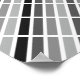 Geometric linear, rectangle, striped pattern of silver, gray and black hues.