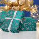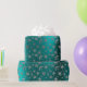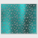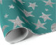 Silver Gray Stars Moon Sky Metallic Greenly Teal Wrapping Paper