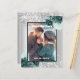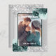 Faux silver looking background, decorated with green florals, flowers and faux silver glitter, sparkles. Personalise and add your photo, names and wedding details.
