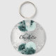 A faux silver looking background decorated with green florals, flowers. Personalise and add your monogram initials and first name