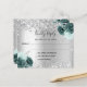 Silver green flowers glitter wedding RSVP card