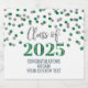 Graduation party custom champagne bottle labels class of 2025 with silver and green glitter pattern confetti.