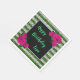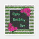Silver Green Glitter Stripes Pink Roses Birthday Napkin