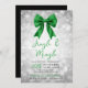 Silver Green Jingle Mingle Xmas Party Bow Snow Invitation