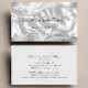 This elegant modern business card features an image of white silk, framed on the top and bottom by grey and white watercolor agate borders trimmed with sparkly silver faux glitter. Personalise it with your name in off-black handwriting-style script and your business information in sans serif font. The reverse is a coordinating shade of solid pale grey. Ideal for hair stylists, makeup artists and aestheticians