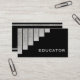 Silver grey, black vertical stripes educator eye catching business card featuring silver grey vertical stripes made of faux silver foil with crumbled texture on black background. An elegant, masculine professional design for men. Note that there is no any real silver foil but a flat picture of it.