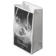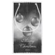 Destei's original illustration of silver grey colour festive Christmas baubles that have a snowflake pattern on them. The background is a lovely grey bokeh. There are also two personalizable text areas.