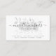 Elegant, Feminine & Modern, Silver Grey Floral element w/ Script - Personalised business card template design. Great for hairstylists, makeup artists, lash estheticians, nail specialists and more.