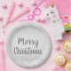 Silver Grey Frost Merry Christmas Paper Plate