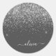 Silver Grey Girly Glitter Sparkle Monogram Name Classic Round Sticker