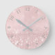 Silver Grey Glitter Minimal Pink Rose Blush Round Clock
