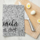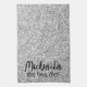 Silver grey glitter sparkles Custom name best Chef Tea Towel