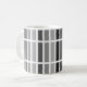 Geometric linear, rectangle, striped pattern of silver, grey and black hues.
