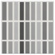 Geometric linear, rectangle, striped pattern of silver, grey and black hues.