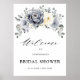 Silver Grey Ivory Floral Bridal Shower Welcome Poster