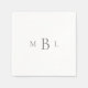 Silver/grey large monogram White Cocktail Napkin. Wedding.
