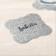 Silver grey light glitter sparkles Custom name Paper Coaster