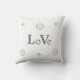 Silver Grey Love Text and Stars on White Throw Pil Cushion