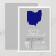 An Elegant Grey and white Rehearsal Dinner invitation, featuring a Navy Blue Ohio silhouette with a heart. The back of the invitation has a simple Grey print design. The Heart is set on Cincinatti. If you need any state Customised in any way, feel free to email me and I can move the heart around or even make the state/heart bigger for the way you would like it, also if there is a background colour you prefer that i don't currently have I can customise it special for you. Mintleafinfo@gmail.com