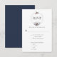 A rustic rsvp featuring a circular frame with silver, grey, navy, and rust winter botanicals with deer head and antlers. The back of the card is navy. Easily personalise with your own information.