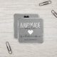 This simple, rustic, and cute business card is perfect for the home crafter, Etsy shop owner, or art fair creative. It features handwritten script font in black and white that says, "Handmade with love by (store name)," on top of a minimal and chic faux printed silver foil border and grey kraft paper background. It's modern, elegant, sweet, and unique; the perfect design for your customers.