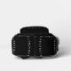 Silver Xmas hanging ornaments on black background pattern design.