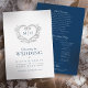 Silver heart wreath monogram wedding program. Personalise your own monogram initials design. In dark blue, silver, and crisp white. Other colours and matching items are available. Ideal for a Prussian blue or classical silver, white and blue themed wedding. © Heart wreath art and design by Sarah Trett for www.mylittleedenweddings.com on Zazzle