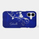 Here's a pretty phone case featuring a stunning silver heart swirl design against a gradient bright royal blue background. Add her name in matching silver on the right, and you have an elegant case, especially for her. Beautiful, and very classy!