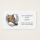 A photo of a horse's head inside a horseshoe business card template for an equestrian farrier. New minimalist version with only name, occupation and phone numbers. The basic white card stock is selected for this card, but the indestructible stock is recommended to keep your cards looking fresh, however, this is not recommended for writing on.