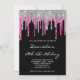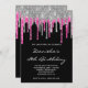 Silver Hot Pink Glitter Drips Black 18th Birthday Invitation