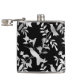 This elegant flask boasts a pretty pattern of silhouette hummingbirds among foliage. The pattern is in silver on a dramatic black background.