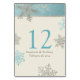 Silver Ice Blue Ivory Snowflakes Winter Wedding Table Number