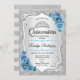 Silver Icy Blue Turquoise Quinceanera Invitation