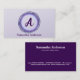 Silver Ink Purple Brush Mark Circle Logo Monogram Business Card