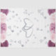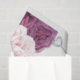 White tissue paper with silver effect heart shaped keys and hearts with arrangements of pink and plum roses and ranunculus.