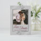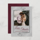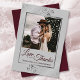 These beautiful burgundy & grey coloured wedding thank you cards feature your photo in a faux foil silver frame surrounded by ornate lace curls and swirls on a grey background. The caption is written in burgundy script lettering and reads: Love and Thanks, with your names below. Simple, stylish, and elegant, this thank you card is the perfect way to let your friends and family know how much you appreciate their love and support.