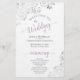 These wedding programs are elegant and tasteful, while still being budget friendly. The design features ornate silver gray faux foil lace with dusty purple or lavender and gray text on a white background. The typography features lacy script calligraphy, and there is room for details on the ceremony, the bridal party, and a short thank you.