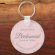 These beautiful bridesmaid keychains are designed to be given as a gift or wedding favour. The design is simple yet elegant and features a frilly silver grey faux foil border with grey text on a pale blush pink background. There is space for her name, the wedding date and the names of the couple. Great way to thank her for being a part of your special day!