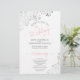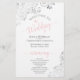 These wedding programs are elegant and tasteful, while still being budget friendly. The design features ornate silver grey faux foil lace with blush pink and grey text on a white background. The typography features lacy script calligraphy, and there is room for details on the ceremony, the bridal party, and a short thank you.