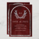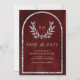 Silver Laurel Wreath Leaves Burgundy Red Wedding Save The Date